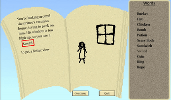 Fill in the blanks and create your own story! Choose between 11(?) different words to insert at any point. Can you unlock every ending? Probably.